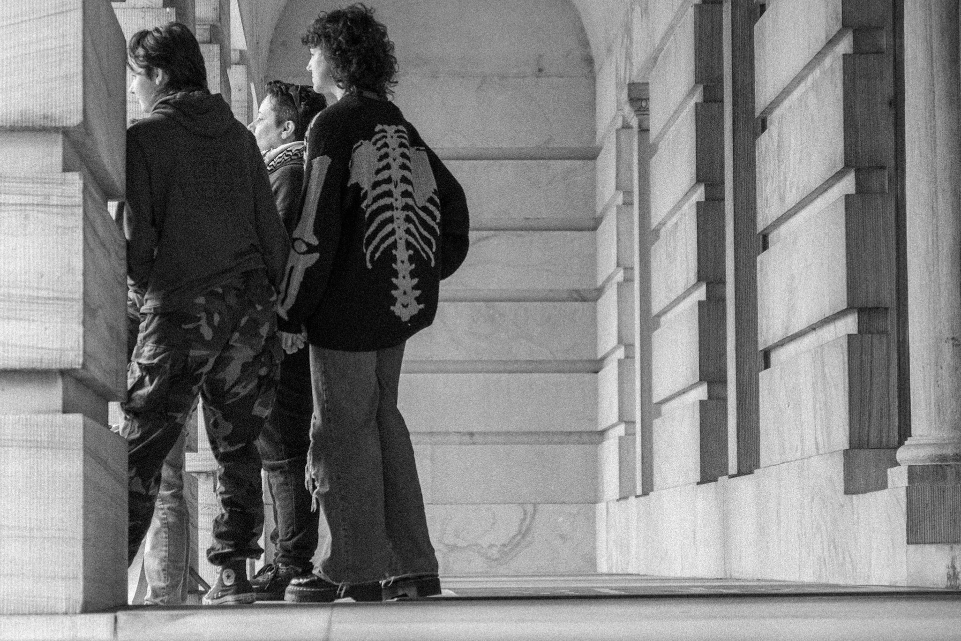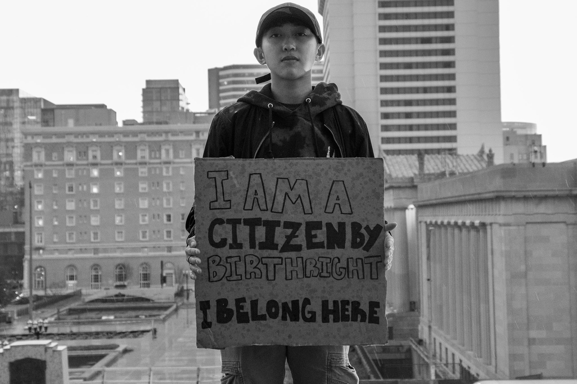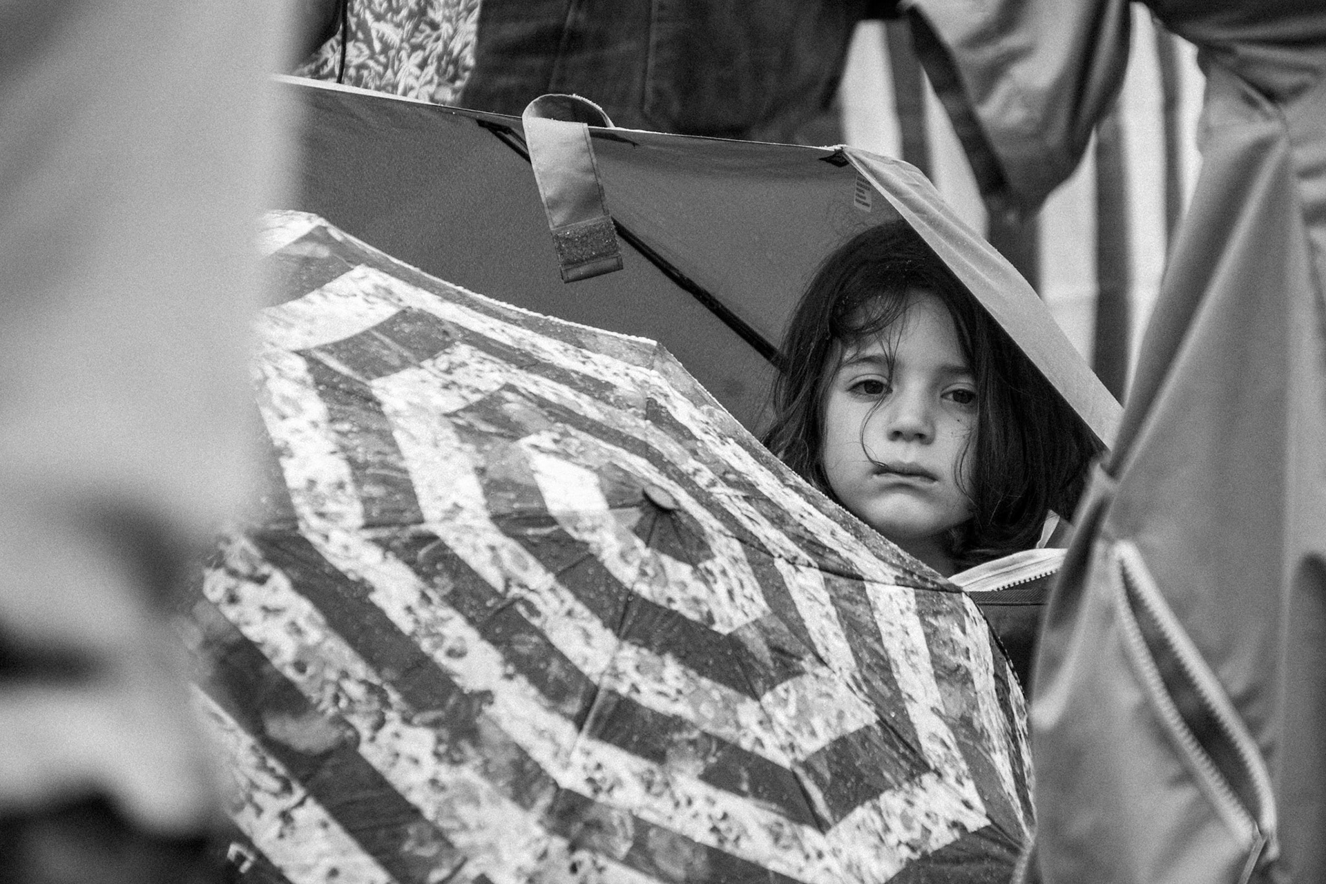 A small girl clings to her mom during the No Kings Day protests in Louisville, KY, on June 14, 2025.