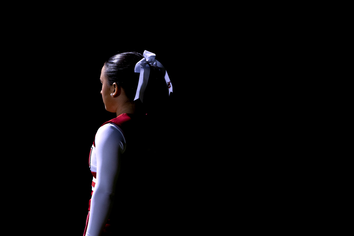 A Western Kentucky University cheerleader watches from the sideline prior to the halftime performance put on by Western’s cheer and dance teams on Thursday, Oct. 16, 2025 during a game against the University of Texas at El Paso at Western Kentucky’s soccer complex in Bowling Green, Ky.